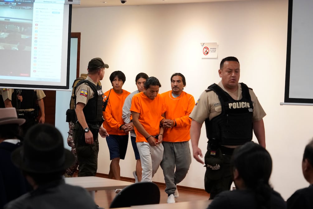 La diligencia se reinstaló pasadas las 14:30, de este martes, 21 de octubre de 2025, con la presencia de los comuneros detenidos: Alfredo P. C., William Andrés R. L., Washington Jeremy L. P., José Segundo A. Q., Luis Ernesto T. M., Diego Armando L. R., Juan Sebastián M. T., Elvis Damián L. M., Luis Enrique M. F., Luis Alberto C. B. y Berny Jonathan A. A., comuneros de Otavalo, así como con Luis Henry J. E., extranjero, quienes fueron trasladados desde la cárcel de Imbabura hacia la capital, vía aérea.