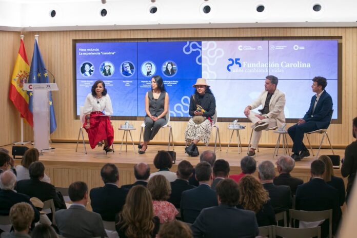 La Fundación Carolina, un institución público-privada vinculado al Ministerio de Asuntos Exteriores, ha celebrado este jueves su 25 aniversario en su sede en Madrid. La institución, dedicada a la cooperación educativa y científica, concede anualmente más de 700 becas de máster o doctorado a estudiantes latinoamericanos en España. “Necesitamos la cooperación más que nunca”, ha señalado la secretaria de Estado de Cooperación Internacional, Eva Granados. Un centenar de asistentes han asistido al acto en el salón de eventos de la Fundación Gregorio Marañón, en el barrio madrileño de Chamberí. Ha hecho esta referencia en plena crisis del orden internacional, que deja huella en la invasión israelí de Gaza y en la rusa de Ucrania.