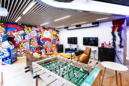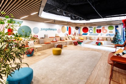 Aunque la labor de la fundación se enfoca principalmente en hospitales, desde primavera tienen en su sede de Madrid el Club Juegaterapia. Un amplio espacio que cuenta con una sala para videojuegos, una para hacer terapias jugando, otra para llevar a cabo talleres de arte, una zona para que los padres tomen café y compartan sus experiencias e incluso un pequeño anfiteatro, con camerino incluido, en el que los pequeños participan en un club de teatro. Sin olvidar una sala inmersiva en la que se llevan a cabo desde terapias a actividades como recrear una playa artificial con arena para los enfermos que el pasado verano no pudieron salir de Madrid. Casi 100 niños usan el club mensualmente, cuenta Esteban, quien destaca las posibilidades que ofrece también a empresas para llevar a cabo eventos o reuniones de equipo, como ya han hecho Disney, Telefónica o el grupo Louis Vuitton, entre otras. “El alquiler nos supone una nueva vía de financiación”, añade. Ya sea por la venta de Baby Pelón, aportaciones de empresas y particulares o alquiler de espacio, cualquier ingreso es bienvenido para continuar con una labor que nació con una videoconsola.