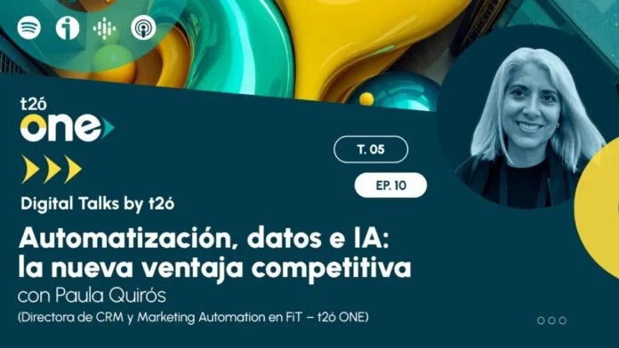 Con este escenario como telón de fondo, el nuevo episodio del podcast Digital Talks by t2ó aborda en profundidad cómo la automatización, los datos y la inteligencia artificial se han convertido en una auténtica ventaja competitiva. En esta ocasión, la conversación cuenta con la participación de Paula Quirós, experta en CRM, marketing automation y soluciones Salesforce. Con más de 20 años de experiencia en el sector tecnológico, Paula lidera actualmente el área de CRM y Marketing Automation en FiT (grupo t2ó One) y es fundadora de Cloud Coaches, donde ha formado a cientos de profesionales. Su visión aporta una perspectiva práctica y estratégica sobre cómo implementar la automatización de forma efectiva y sostenible.