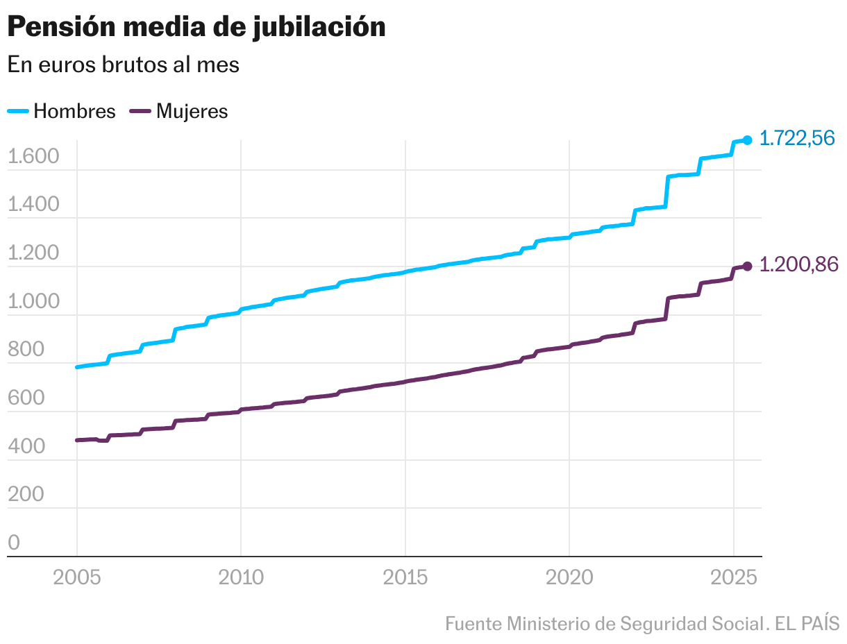 Ambos incrementos superan el 2,8% de revalorización que el Gobierno aplicó para 2025, un guarismo equivalente a la inflación para no perder poder adquisitivo. Este desfase se da para ambos sexos por varias razones, entre las que destaca la siguiente: los empleados que se retiran ahora cobraron y cotizaron más que las generaciones anteriores (y que van falleciendo), lo que empuja el promedio al alza.