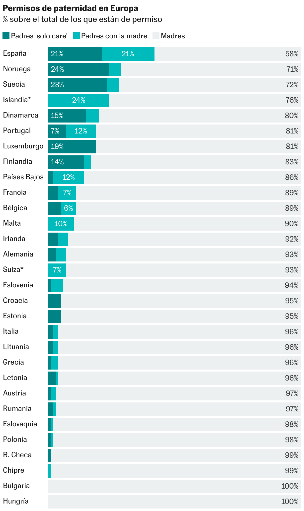 Así lo señala el documento de trabajo ¿Qué factores influyen más en que los padres usen el permiso por nacimiento sin solaparlo con la madre? Caracterización del ‘solo care’ en España y comparativa con los países de la Unión Europea, publicado esta semana por el Instituto de Estudios Fiscales y firmado por las investigadoras Adela Recio y Cristina Castellanos. El análisis sugiere que el nivel de renta es el principal factor que determina si un padre decide cuidar en solitario a su bebé una vez que la madre se reincorpora al trabajo. Es decir, sin que ambos permisos se solapen pasadas las primeras seis semanas tras el nacimiento, que son obligatorias e ininterrumpidas para ambos. Esta modalidad, conocida en el entorno académico como solo care, es la “forma más avanzada de corresponsabilidad”, explica Recio: el padre se queda al frente, desarrollando competencias y rompiendo la lógica tradicional que históricamente ha atravesado a los cuidados.
