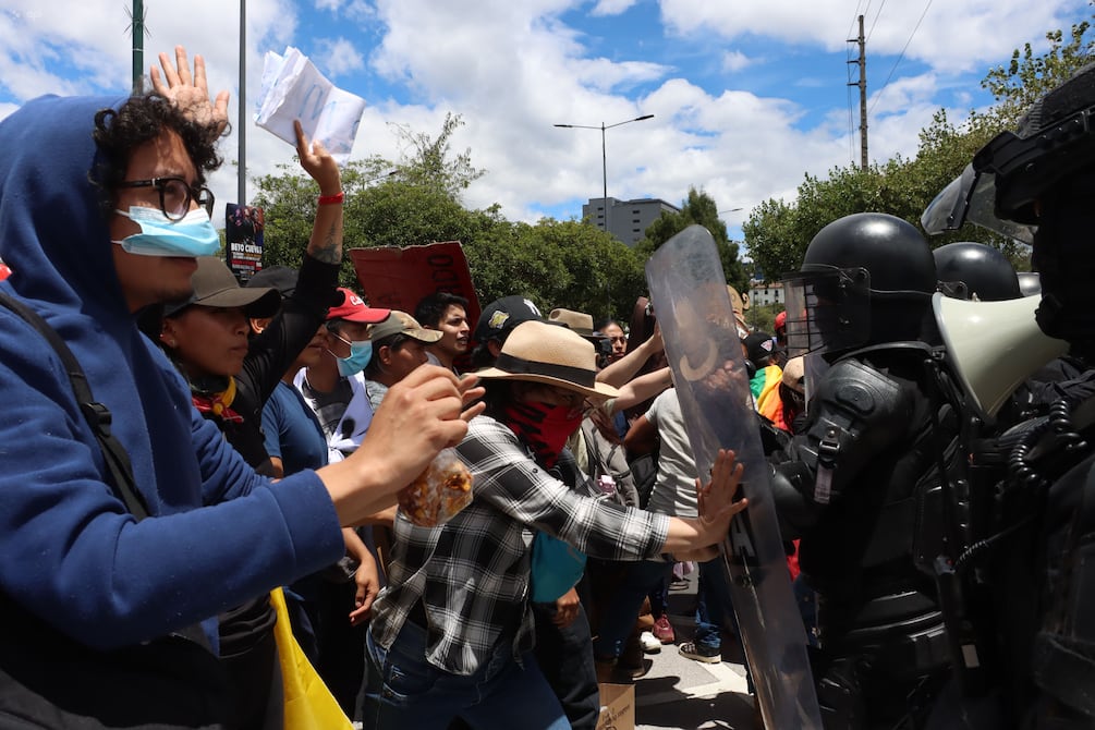 Esta manifestación de rechazo recorrió varios tramos de la avenida 6 de diciembre y fue repelida por grupos antimotines de la Policía Nacional. (I)