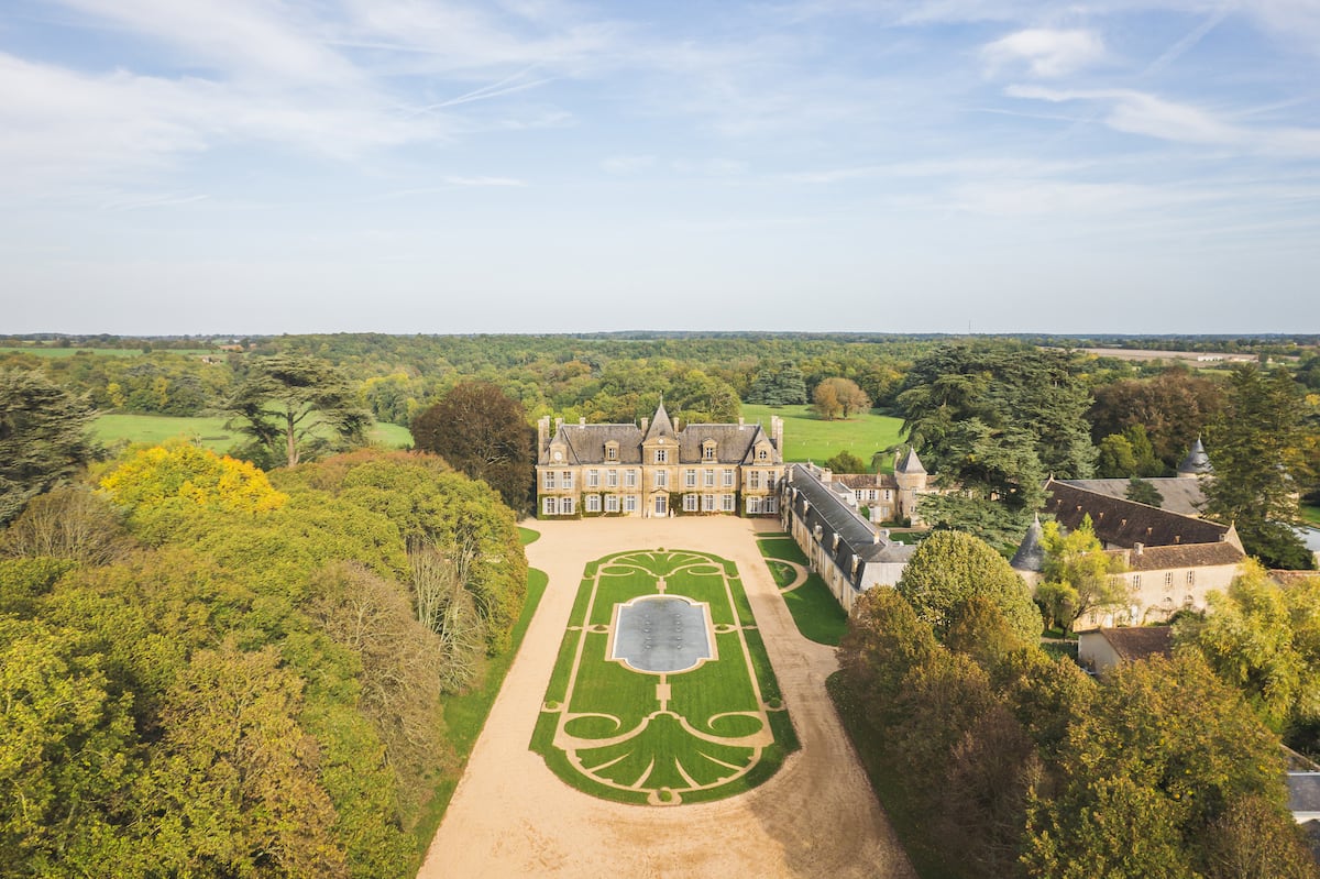 Los paisajes de Poitiers, en la región de Nueva Aquitania, famosa por sus viñedos, castillos, pueblos medievales, abrigan este château del siglo XVIII. Se halla al oeste de Francia, entre Tours y Burdeos. La singular propiedad comprende el château, hoy convertido en hotel, que suma 1.600 metros cuadrados de superficie habitable y actualmente incluye vestíbulo, dos salones, biblioteca, tres comedores, cocina, 15 dormitorios y suites, sala de reuniones (100 metros cuadrados) y oficina. Las plantas baja y primera de la mansión han sido renovadas.