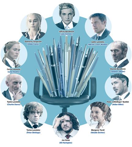 “El liderazgo es, en esencia (…) influir sobre otros para conseguir una meta, o influir en alguien para que haga algo”, dice Erich Dierdorff profesor de gestión de la Escuela de Negocios Driehaus de la Universidad de DePaul. En este sentido, agrega, casi todos los personajes principales de la serie exhiben alguna forma de liderazgo, con excepción de Jaime Lannister.