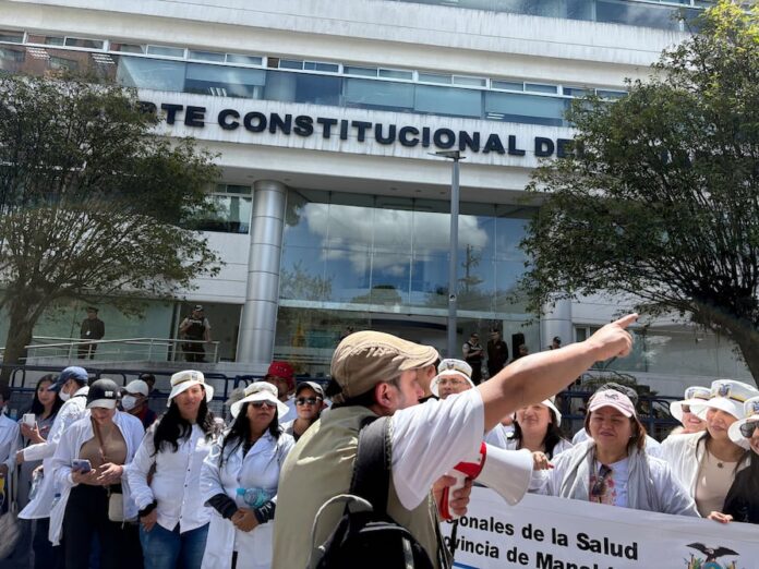 Por su parte, la Federación Médica Ecuatoriana, la Asociación de Enfermeras y Enfermeros del Ecuador y más gremios de profesionales de la salud se movilizaron desde el parque El Arbolito hacia la Corte para presentar una demanda de inconstitucionalidad.