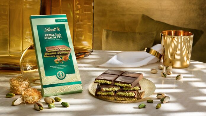 Lindt & Sprünglila empresa suiza de chocolate premium, lanza en España y Portugal la barra de chocolate Lindt Dubai Style. Este producto innovador está en línea con el ADN de Lindt de responder a las necesidades de sus consumidores y ofrecer un sabor especial que satisface incluso los paladares más exigentes. El chocolate estilo Dubái es una barra. Base de chocolate con leche complementada con pasta de pistacho y kadayif crujiente.el relleno de estrella de este emblema Chocolate que ha conquistado las redes sociales.
