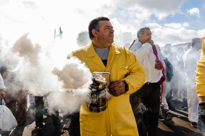 Varios cientos de apicultores con ropa y utensilios del trabajo en las colmenas, que según la sede de la Comisión Europea en Madrid protestan contra las importaciones masivas de miel, en muchos casos fraudulentos, lo que influye en la rentabilidad y el sustento de la sostenibilidad, la actividad demostrada, demostrada, que en una buena parte de la España diferente se lleva a cabo. La persona responsable del sector Pedro Lasertales condena la falta de compromiso con este problema de todas las administraciones y exige controles importantes en beneficio de los apicultores y los consumidores. Eso pagaría la miel, que solo se hace con un producto falso con otros puestos de reemplazo Y básicamente agua y azúcar. UPA ha condenado la situación y ha anunciado otras movilizaciones para defender el sector. Con el mismo propósito, las movilizaciones de apicultores se convocaron en Francia y Portugal.