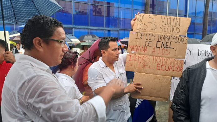 Otro grupo llevaba camisetas y uniformes CNEL porque la protesta fue tomada antes de su día de trabajo. La medida se replica en cada unidad de negocios.