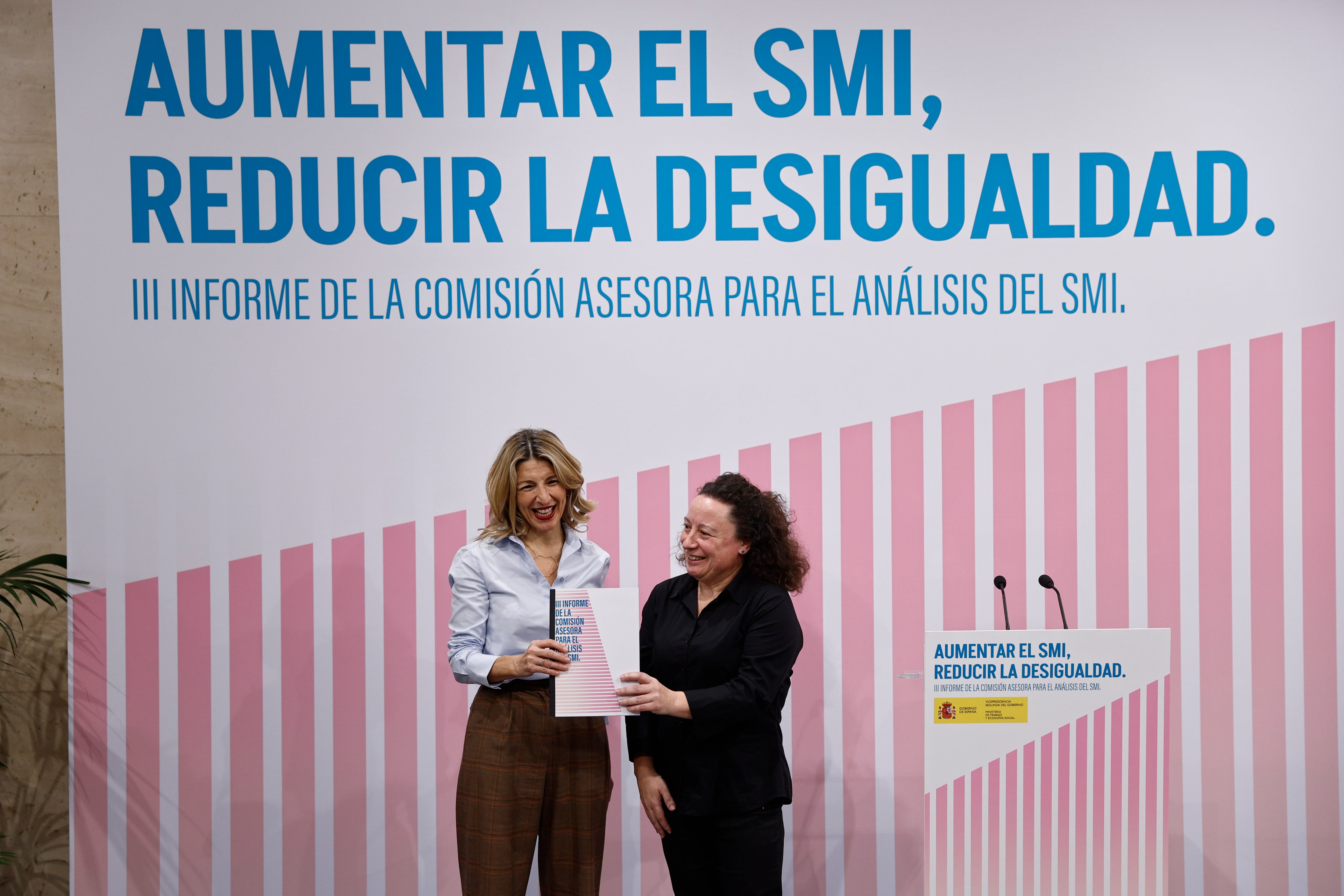 Horas antes de la reunión a tres, la vicepresidenta segunda del Gobierno y ministra de Trabajo, Yolanda Díaz, fue la anfitriona de la recepción Informe de salario mínimo que había encargado a un grupo de expertos. El texto, elaborado por miembros del gobierno (de los Ministerios de Economía, Finanzas y Trabajo), expertos sindicales y analistas universitarios -no participan los empresarios- recomienda cuánto se debe aumentar el salario más bajo posible, del 60% de la media al Seguir siendo salario neto y no perder poder adquisitivo. Este grupo de expertos plantea dos escenarios: un incremento del 3,44% (39 euros más, hasta 1.173 brutos en 14 pagas) o del 4,41% (50 euros al mes, 1.184 en total). En cada caso, eligen un método de cálculo. Díaz agradeció el aporte de los expertos: “Los mayores avances provienen de la colaboración con quienes dedican su vida a la ciencia y la investigación”.