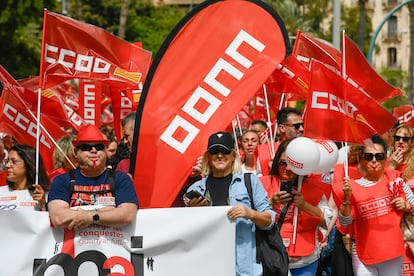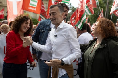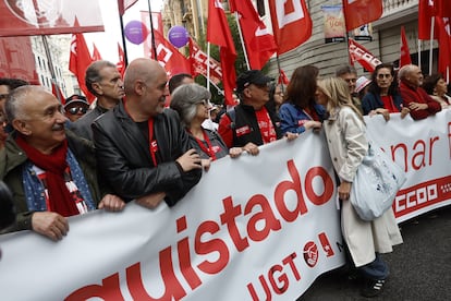 “En estos momentos se están cuestionando avances en derechos que pensábamos que eran irreversibles”, ha apuntado en la misma dirección Álvarez. “Hay que poner pie en pared porque lo que nos estamos jugando también es la propia libertad”, ha añadido. “La internacional del odio quiere terminar con nuestro estado del bienestar”, ha remachado el mandatario de UGT. Tanto Sordo como Álvarez han pedido que, tras la aprobación de la proposición de ley para reducir por ley la jornada laboral semanal (sin merma de salario) hasta un máximo de 37 horas y media en el próximo Consejo de Ministros, los partidos políticos no pongan trabas.