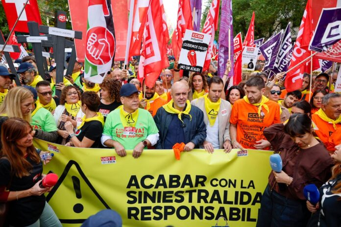 Álvarez ha insistido en el mismo mensaje: “Sabemos lo que hay que hacer, ellos [en referencia a los empresarios] también lo saben. Las experiencias de control de los riesgos laborales dan resultados extraordinarios, pero no quieren que les toquen el bolsillo”. El jefe de UGT también ha pedido un refuerzo de las inspecciones: “Es más fácil que te toque el Euromillón que un inspector en la obra”.