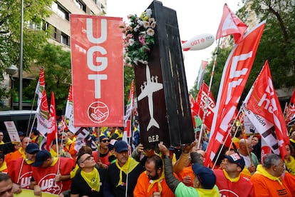 Los últimos datos provisionales del Ministerio de Trabajo recogen una ligera caída de la mortalidad laboral en lo que llevamos de año, con 398 decesos en jornada (404 en 2024). Es un descenso del 1,8% en un contexto de creación de empleo. Sin embargo, la construcción dibuja una senda muy diferente y que preocupa a los trabajadores. Esta actividad pasa de 93 muertes hasta el octavo mes del año pasado a 113 en 2025, un aumento del 22%. También crecen en la industria manufacturera, de 53 en 2024 a 56 este año (6% más). Los dos sindicatos más representativos de ambos sectores, CC OO y UGT, se han concentrado este jueves frente a la sede de la CEOE en Madrid para protestar por este incremento de la siniestralidad, con especial foco en los decesos en la obra.