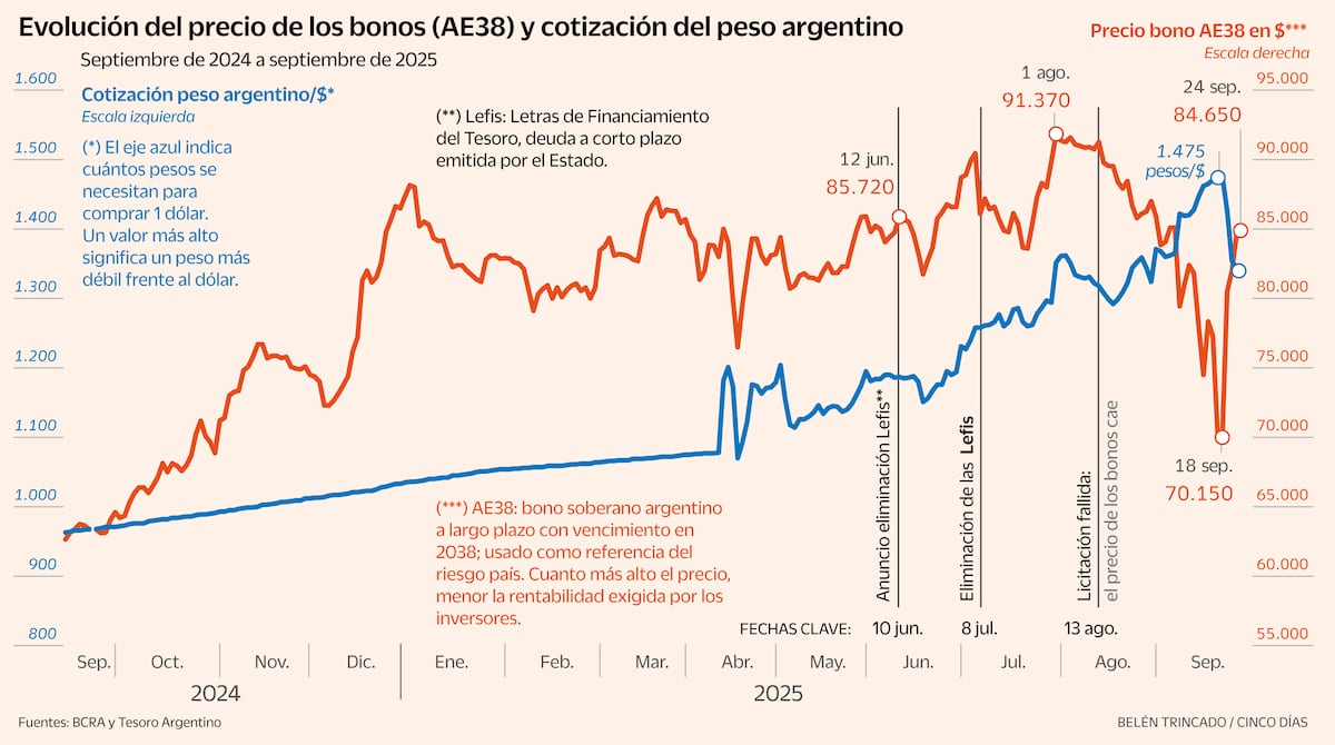 En tal tesitura, el peso comenzó a devaluarse, las tasas subían junto con el riesgo país, reflejando la pérdida de confianza de los mercados. Mientras la actividad económica, según diversos indicadores, se estancaba después del rebote inicial tras la llegada de Milei. La crisis cambiaria de septiembre de 2025 marcó el punto de inflexión definitivo, con una derrota electoral contundente en la provincia de Buenos Aires que funcionó como plebiscito sobre el modelo económico e introdujo un elemento más: el riesgo Kuka, o vuelta del peronismo kichnerista.