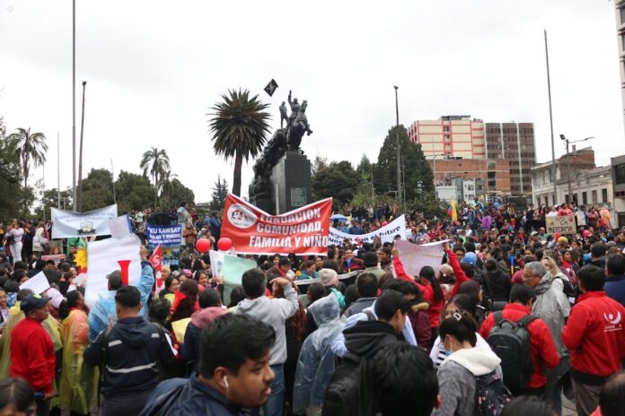 Una multitudinaria marcha se realizó la tarde de este jueves, 19 de febrero de 2026, en Quito, en contra del proyecto de Ley Reformatoria al Código Orgánico de Organización Territorial, Autonomía y Descentralización (Cootad) para la Sostenibilidad y Eficacia del Gasto de los Gobiernos Autónomos Descentralizados (GAD).