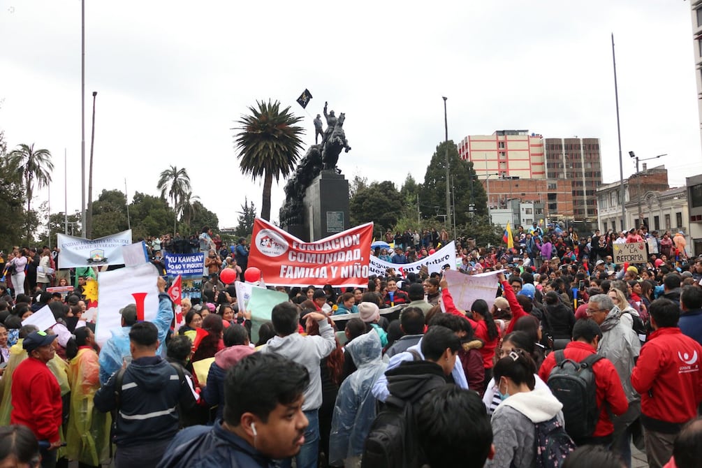 Con pancartas, consignas y banderas, los asistentes recorrieron la avenida Gran Colombia hasta llegar a los exteriores de la Asamblea Nacional, donde permanecieron en un plantón. Los ciudadanos exigieron al Legislativo que rechace este proyecto de ley económico urgente que envió el presidente Daniel Noboa.