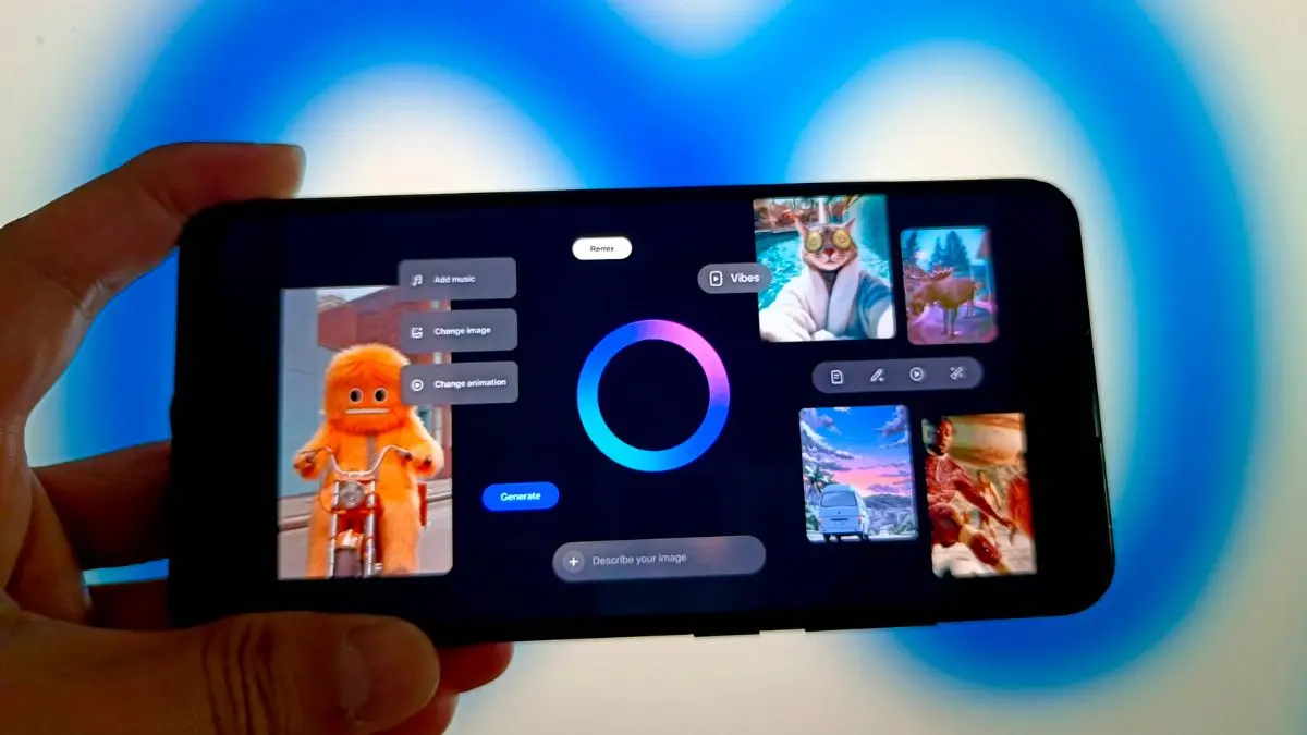 Vibes no se trata exactamente de una red social, aunque sí es cierto que se comporta como tal. Dentro de la plataforma, los usuarios pueden generar clips de vídeo desde cero simplemente introduciendo un prompt de texto o bien remezclar vídeos existentes, añadiendo nuevas visuales, capas musicales o estilos personalizados.