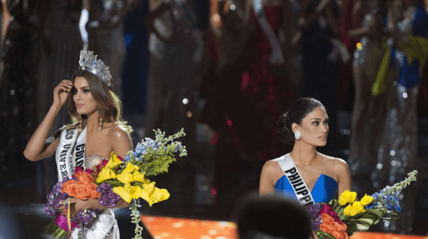 Pasaron tan solo tres minutos en los que la colombiana Ariadna Gutiérrez disfrutó la corona hasta que Harvey se disculpó diciendo que había cometido un “terrible error”. Fue ahí donde llegó el incómodo momento y le quitaron la corona a la latinoamericana para ponérsela a Pia Wurtzbach. ¡Ouch!