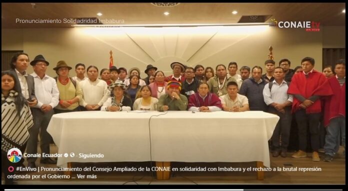“Sancionen al Gobierno por estar reprimiendo, por estar despojando de nuestras tierras ancestrales. Rechazamos, una vez más, y nos mantenemos firmes en resistencia en los territorios ancestrales en el Ecuador. También exhortamos a la Cruz Roja Internacional que permita realizar corredores humanitarios en la provincia de Imbabura”, dijo el presidente de la Conaie.
