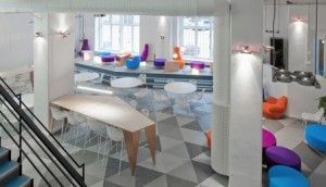Oficinas de Skype en Estocolmo. (Imagen de: inc.com) Oficinas de Skype en Estocolmo. Con un elegante tejido blanco de metal, Skype ha querido diseñar sus oficinas emulando el espíritu de las conexiones que ha podido establecer entre sus usuarios. Los colores de sus muebles, áreas de descanso y papeles tapices son un guiño al éxito que ha tenido la compañía penetrando mercados de todo el mundo.