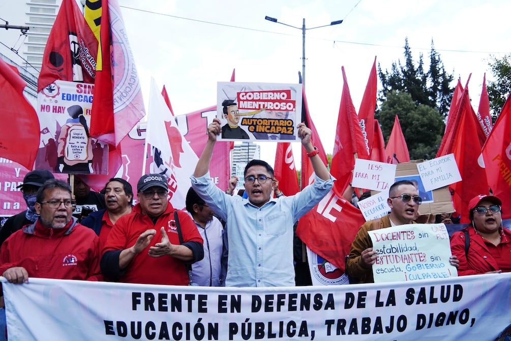 En la movilización en Quito, dirigentes como Edwin Bedoya, presidente del FUT; Marcela Arellano, presidenta de la Ceosl; Andrés Quishpe, presidente de la UNE, ratificaron su rechazo a las leyes de Solidaridad Nacional, Inteligencia, Integridad Pública y Transparencia Social, que se aprobaron en la Asamblea Nacional y están vigentes en el país, así como su oposición al proyecto de ley para el Fortalecimiento Crediticio que se tramita en el Parlamento.