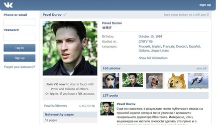 Tras ello, abandonó Rusia en 2014 y afirmó que no tenía planes para volver y que el país era incompatible con el negocio en internet en ese momento. A finales de 2014 VK tenía 270 millones de usuarios.
