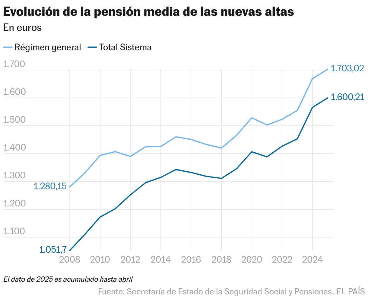 Los gastos de pensión son una suma y continúan cada mes. El Seguro Social informó el viernes que las nuevas pensiones promedio que han ganado a los que se retiraron en marzo pasado Los 1.600 euros por primera vezAn increase of 7.3% compared to the same month of 2024. This amount is average that the new height of old age, regardless of whether the new pensioner worked in the name of others or was autonomous, but if only the first ones are taken into account, the new pensioners who became an increase of EUR 1,700 -euro -euro -euro euro euro euro euro euro euro euro euro euro -euro -euro -euro euro Euro Euro Euro Euro Euro Euro, Euro Euro, Euro Euro, Euro, euro, euro, euro, euro euro, euro, euro euro, Área de euro -euro -euro -euro, y la primera vez, y por la primera vez, y por la vez, y por la vez, y por la vez, y por la vez, y por la vez, y por la vez, y por la vez, y por la vez, y por la vez, y por la vez, y por la vez, y por la vez, y por la vez, y por la vez, y por la vez, y por la vez.