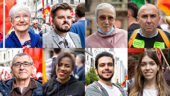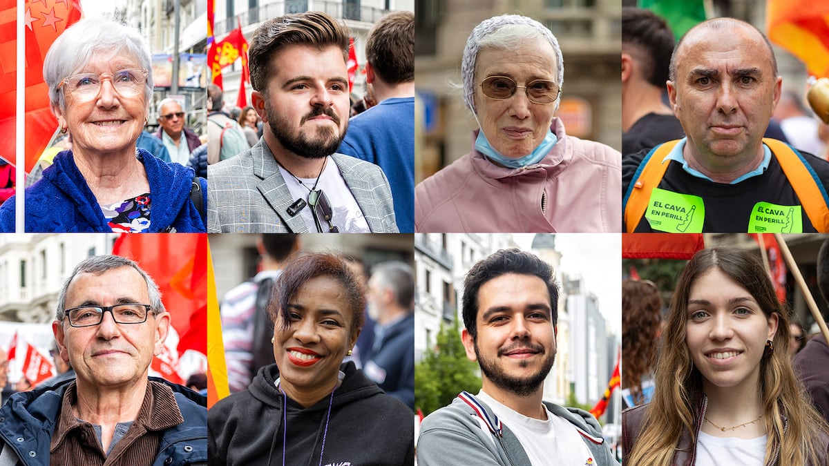 Miles de personas han protestado que los sindicatos han llamado a 80 ciudades españolas Para el 1 de mayo. El lema seleccionado por UGT y CC OO es «para proteger los beneficios de los derechos». Es un eslogan abierto en el que se ajustan muchas afirmaciones de trabajo. Varios participantes en las protestas en Madrid y Barcelona explican las suyas.