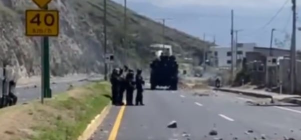 A las 12:00, miembros de la Policía Nacional habilitaron la vía y pusieron un cordón humano sobre el extremo derecho para evitar que los manifestantes volvieran a bloquear el paso.