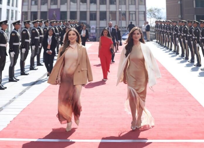 Se trata de paola y de sobre Lucía JaramilloAquellos que llegaron a la sede del legislador llevaban un vestido suelto y largo con diferentes tonos cremas y un chaleco.