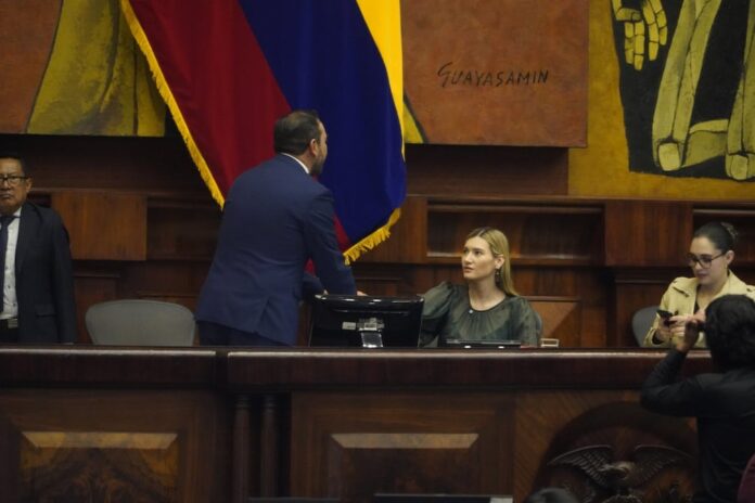 La asambleísta oficialista, Sade Fritschi, tuvo que asumir la presidencia de la sesión plenaria 061 de la Asamblea Nacional, de este 15 de enero de 2025, para recibir el informe anual de labores de varias autoridades de control, entre ellas Mario Godoy, presidente del Consejo de la Judicatura, sobre quien existe en proceso un juicio político.