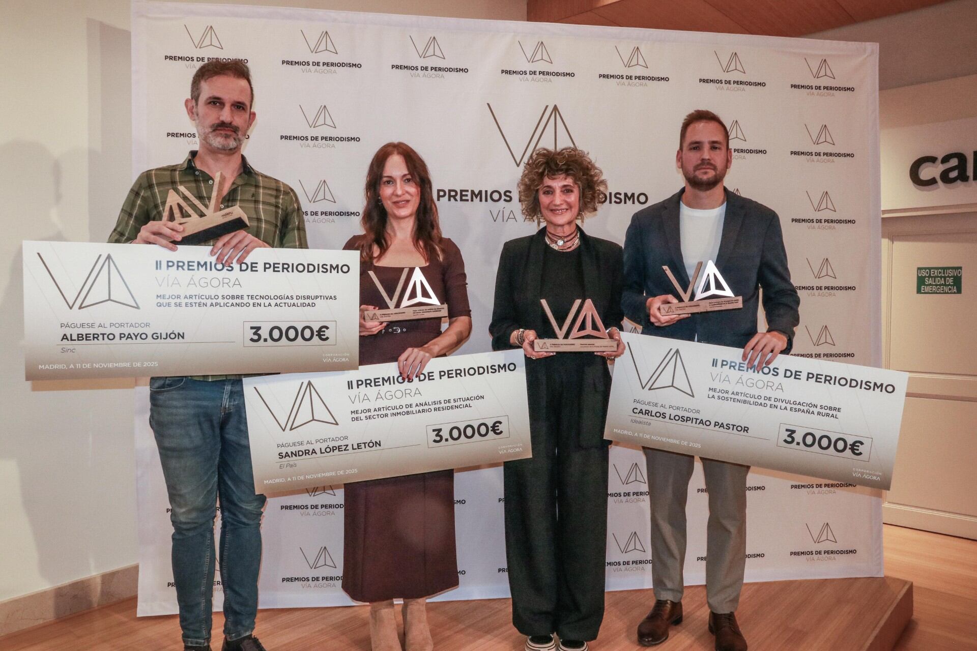 Los Premios de Periodismo VÍA ÁGORA, empresa especializada en la gestión y desarrollo de activos inmobiliarios, se dividen en 3 categorías: Inmobiliario residencial, tecnologías disruptivas y sostenibilidad en la España rural. Junto con López Letón, los otros premiados han sido Alberto Payo, por su artículo Los hogares del futuro pueden estar construidos a base de hongos, publicado en SINC; y Carlos Lospitao, por Los pulmones olvidados de España: la gestión forestal y las viviendas de madera pueden frenar incendios y revitalizar, publicado en Idealista News.