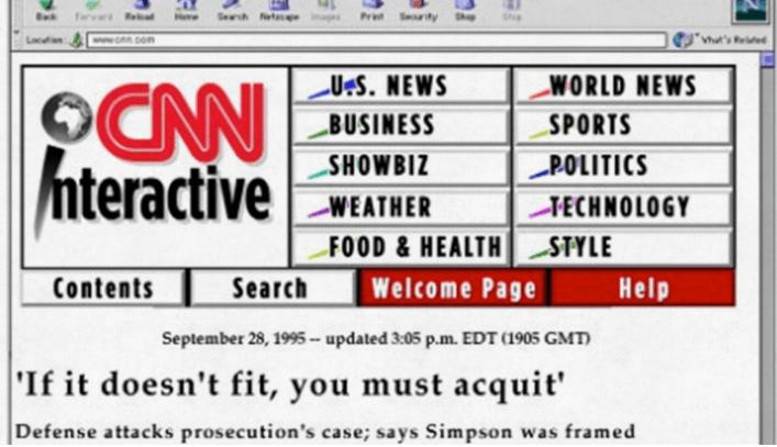 CNN.com inició como un experimento llamado CNN Interactivo. La idea partió en 1995, y una de sus primeras historias narradas como noticia fue el juicio por asesinato contra O.J Simpson.