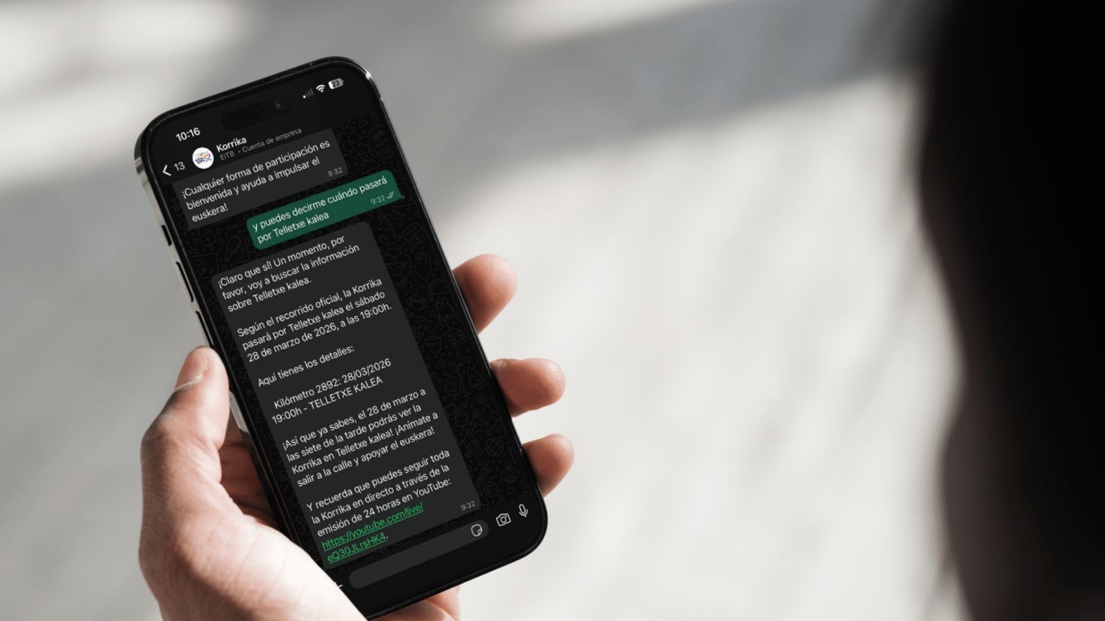 Las marcas y los medios llevan años buscando formas más directas de conectar con sus audiencias. Los chatbots tradicionales no cumplieron esa promesa. Pero la nueva generación de IA conversacional está reescribiendo las reglas. Un caso reciente lo demuestra con datos: durante la Korrika, uno de los eventos culturales más importantes del País Vasco, un asistente de inteligencia artificial desplegado en WhatsApp y en los activos digitales de EITB acumuló cerca de 200 horas de conversaciones en euskera en solo dos semanas, con una valoración de 4 sobre 5 y un 93% de conversaciones resueltas con éxito.