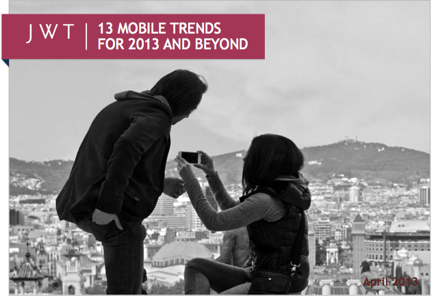 El informe de las Trece tendencias móviles para el 2013 de JWT, resume las tendencias principales del Congreso del Móvil con ejemplos que ilustran el desarrollo e implicaciones para las marcas, además agregan entrevistas con varios líderes de opinión y expertos en móviles:
