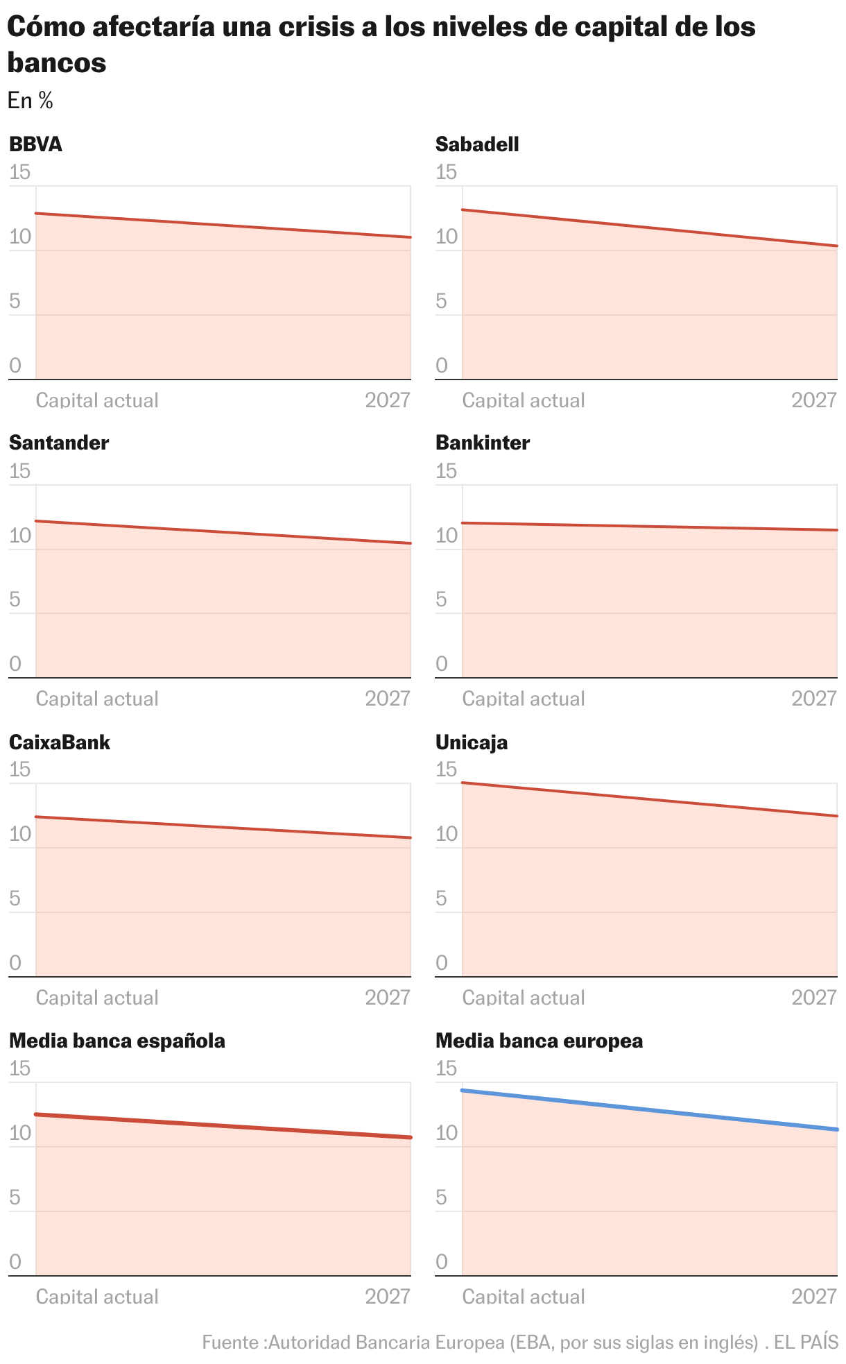 Pero ahora, en un contexto de desaceleración económica, tasas más bajas, tensiones geopolíticas e incertidumbre financiera, los reguladores quieren comprobar hasta qué punto las entidades podrían resistir una hipotética tormenta. “El sólido desempeño de los bancos de la UE en las pruebas de resistencia de 2025 a nivel de toda la UE es alentador, pero esto no debería generar complacencia entre los bancos ni los supervisores. Mantener un capital adecuado sigue siendo esencial para garantizar que el sistema bancario de la UE pueda seguir apoyando la economía en condiciones adversas y evitar convertirse en una fuente de amplificación durante las crisis”, advierte el organismo, en línea con sus mensajes de prudencia.