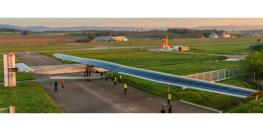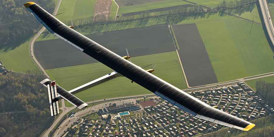 Solar Impulse 2 está hecho de fibra de carbono y posee 17.000 paneles solares que recubren las alas de 72 metros, combinadas con unas baterías de litio de alta capacidad encargadas de proveer de energía al avión por la noche.