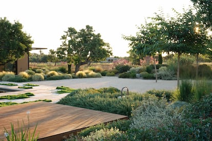 De hecho, el mundo vegetal —pensando en los números— “mejora el momento de la venta, pero también se agilizan los procesos: son más rápidos, tiene más sentido la operación y mayor rentabilidad”, enumera el paisajista italo-español con base en Ibiza Valerio Miragoli. Y añade: “Se suele pensar en el metro cuadrado construido, pero no en el valor del entorno donde está ese metro cuadrado”. Miragoli llegó a conocer a un empresario alemán que siempre empezaba en España sus promociones por el arbolado. Defiende una jardinería mediterránea de bajo riego, basada en una sabia selección de especies, acorde a las exigencias del cambio climático. “Es una parte esencial en la percepción de la calidad de los clientes. Y alcanza al mundo de los sentidos, son los colores cambiantes, los olores, siempre evocadores, que te anclan a un lugar. También es la puerta de entrada y salida de una promoción”, describe Santiago López.