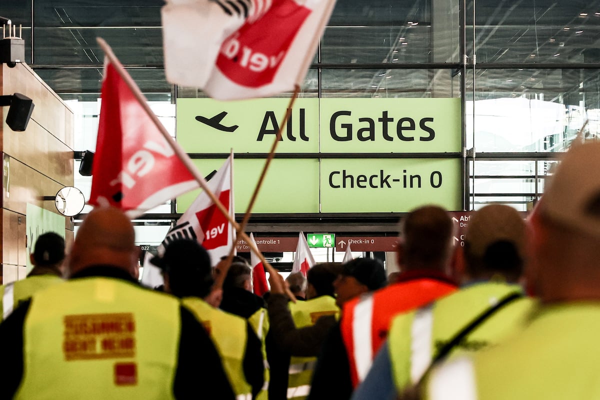 Alemania casi golpeó debido a la transmisión Una huelga 24 horas en 13 de los aeropuertos más importantes del país, incluidos los de los de los de FrankfurtMunich y Berlín. La huelga se vio obligada a cancelar 3.400 vuelos, que, según una estimación inicial de la Asociación del Aeropuerto (ADV), afectan a aproximadamente 510,000 pasajeros.