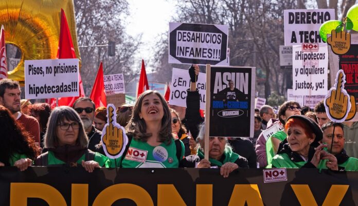 Miles de manifestantes han regresado en Madrid en Madrid este domingo para aumentar la crisis inmobiliaria y los precios inmobiliarios y solicitar medidas para aliviar esta situación por parte de las administraciones públicas. El movimiento Hábitat 24, que une a casi 40 grupos a favor del acceso a la vivienda y las asociaciones de vecindarios, sindicatos y sociales, conjuró la movilización en Atocha desde el mediodía. Los ciudadanos dependían de Puerta del Sol, donde se encuentra la sede de la comunidad de Madrid.
