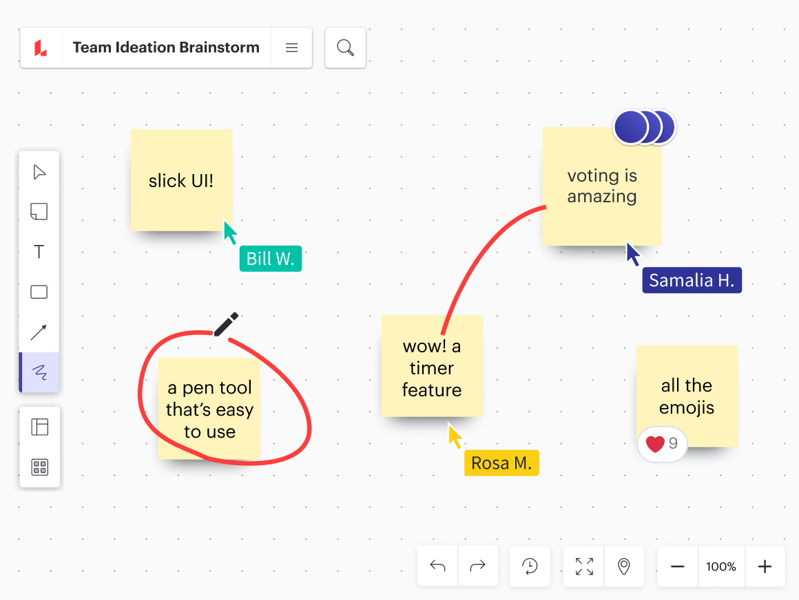 - Poder proponer ideas en un lienzo infinito compartido con otras personas.