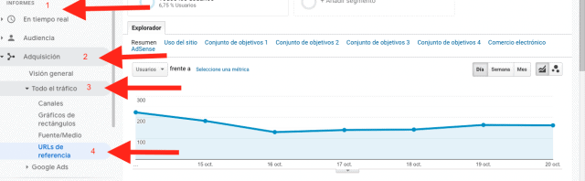 Informes>Adquisición>Todo el tráfico>Url’s de referencia.