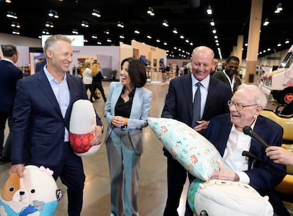 En la junta de este año se batió el récord de asistentes, con 19.700 personas, aseguró Buffett, que dio algunas cifras de la venta de productos del grupo en el bazar que monta Berkshire Hathaway en paralelo a la junta. En un solo día se vendieron 317.000 dólares en chocolatinas y dulces de See’s Candies; 310.000 dólares en calzado y ropa de Brooks y 250.000 dólares en juguetes de Jazwares, incluidos sus muñecos Squishmallows.